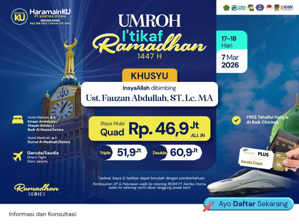 KETENTUAN :?Jadwal, Biaya, dan Fasilitas? dapan berubah sewaktu-waktu mengikuti kebijakan pemerintah KSA dan Indonesia