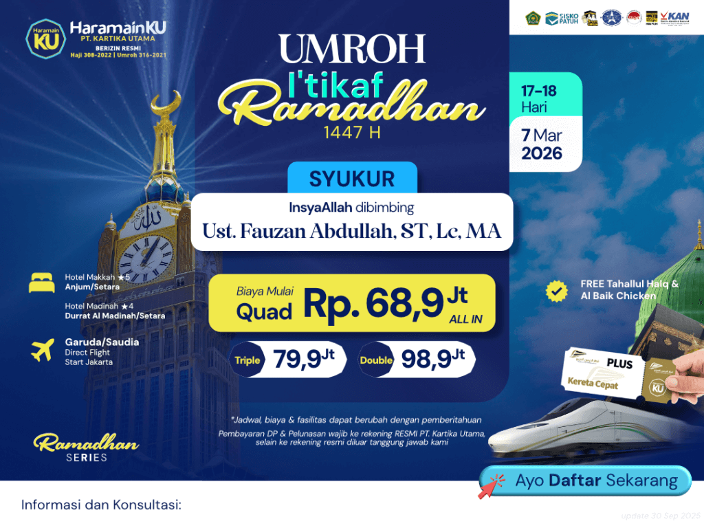 KETENTUAN : Jadwal, Biaya, dan Fasilitas dapan berubah sewaktu-waktu mengikuti kebijakan pemerintah KSA dan Indonesia